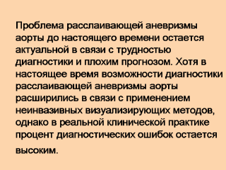 составляет 50%. Острая форма расслаивающей аневризмы аорты была у 8,