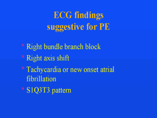 similar symptoms and signs as acute PE. Several findings may suggest PE, but these are not