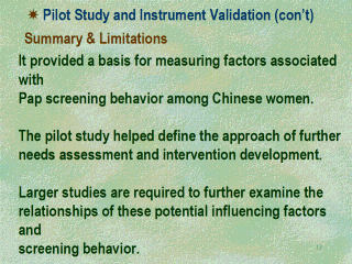 Hou, S., Fernandez, M., Baumler, E., Parcel, G, & Chen P. (2003). Correlates of cervical cancer screening among women in Taiwan. Health Care for Women International, 24 (5), 384-398.