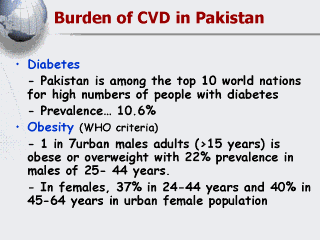 | One in seven urban males adults over 15 years was obese or overweight with 22% prevalence in males of 25- 44 years. In comparison, obesity was more common in females, 37% in 24-44 years and 40% in 45-64 years in urban female population. |