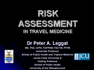 | This lecture is one of a series produced for James Cook University, Australia, and the University of the Witwatersrand, South Africa. The lectures are used as part of their annual travel medicine courses. |