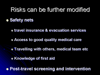 Risks can be further modified by use of appropriate safety nets and screening travellers post travel.