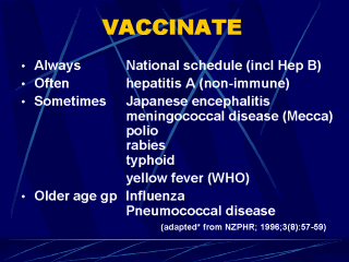 | This list is adapted from the New Zealand Public Health Report [1996; 3(8): 57-59]. We will discuss these vaccines more fully. |