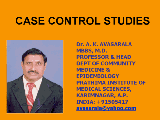 divisional secondary care hospitals Then completed post graduation in public health medicine/preventive & social medicine & epidemiology and teaching medical graduates and post graduates, nursing students, physiotherapy students, primary care personnel for the last 15 years. At present, working as Professor & Head of the department of Community medicine & Epidemiology contributing to the cause of epidemiological spread and growth in India as Indian super course epidemiology developer . Other eleven super course lectures of mine can be accessed at www.pitt.edu/~super1/faculty/lecturers/htm |