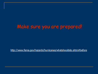 following useful links: http://www.fema.gov/hazards/hurricanes/whatshouldido.shtm#before http://www.fema.gov/areyouready/hurricanes.shtm http://www.fema.gov/pdf/areyouready/appendix_c.pdf