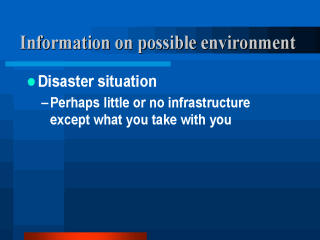 | There may be little or no infrastructure available, except what the field volunteers take with them. |