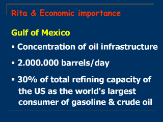 Rita's path takes it through a dense area of offshore pipelines and oil platforms, and on land to an area with large refineries.