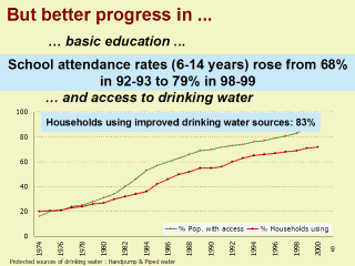 school) There is a 37% drop-out rate between classes I to IV Learning achievements are low Girls’ attendance is lower than boys: 74% vs 83% |