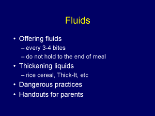 Thickening liquids: may make fluids easier to control Can use rice cereal, instant mashed