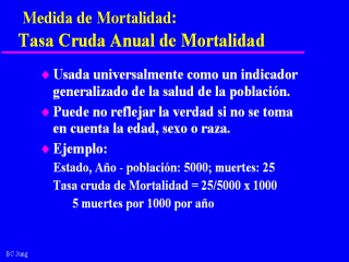 Esta medida da una idea global de cómo la población lo está haciendo. Si va a comparar una tasa de muerte de una población con otra, necesitamos tomar en cuenta cualquier diferencia como en edad, raza o sexo.