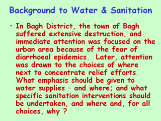 The early phases of most emergencies are characterised by being chaotic. Funding is always short at the beginning and it is crucial that what funds are available, are very specifically targeted. Staffing takes time to put into place, and a balance has to be achieved between anticipated funding and the staffing necessary to implement the programme. While many professionals in the sector may have the technical competence to handle this type of emergency situation, rather fewer have the mental fortitude needed to operate where there has been such a huge loss of life. It is within this ‘milieu’ that this case study came about. |