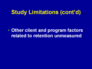 | Finally, there may be other predictors of retention in care that we did not measure such as client help-seeking behaviors or provider-related factors. |