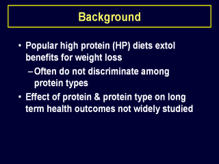 equally. The effect of protein and protein type on long term health outcomes has not been widely studied. |