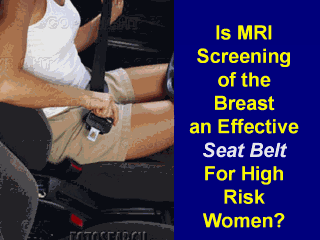 | Hence the subtitle of this talk: Is MRI screening of the breast an effective seat belt for high risk women? |
