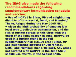 - Trivalent OPV should be used for SIAs in 2006-2007 unless wild