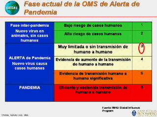 El mundo está actualmente en fase 3: un nuevo subtipo de virus influenza está causando enfermedad en humanos, pero aún no se ha disemina eficiente y sostenidamente entre humanos.