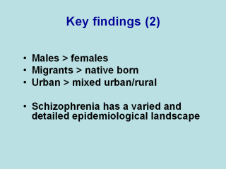 findings were generally consistent across studies. Together with the results of other special groups and the core studies, these results suggest that the prevalance of schizophrenia is varied. |
