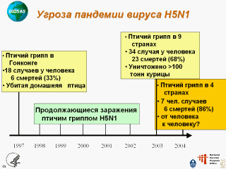 Этот слайд показывает временную схему заражения людей птичьим гриппом H5N1.