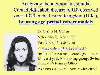 Cohen CH, Valleron A-J. When did Bovine Spongiform Encephalopathy start? Implications on the prediction of a new variant of Creutzfeldt-Jakob disease (nvCJD) epidemic. Int J Epidemiol 1999;28:526-31.