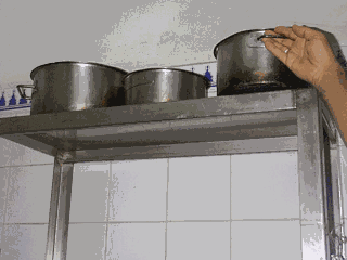 بالرغم من موضع هذه الحلة في مكان تخزين الأواني التي تم تنظيفها إلا أنها لا تزال غير نظيفة حتى للعين