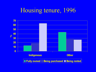 Indigenous Australians are much less likely than other Australians to live in a home that is owned or being purchased by its occupants. Among those who rent, Indigenous households are less likely to be renting from private landlords and more likely to be in public housing. |