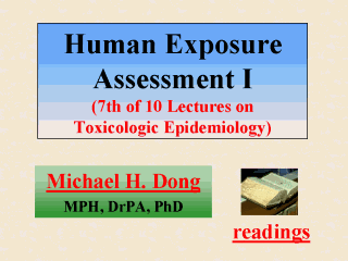 of discussion in the first four lectures. In this lecture, special attention is also given to the basic applications, the general techniques, the advantages, and the limitations of the direct measurement methods commonly employed in HEA. These direct measurement methods, almost all in the form of human biological monitoring, are designed to measure the internal dose of a chemical or biological agent present in the human body. Indirect measurement methods used in HEA will be covered in Lecture 8. The titles of the 10 lectures are: (1) Toxicology and Epidemiology; (2) Public Health and Risk Assessment; (3) Toxicology and Risk Assessment; (4) Epidemiology and Risk Assessment; (5) Toxicologic Side of Epidemiology; (6) Epidemiologic Side of Toxicology; (7) Human Exposure Assessment I; (8) Human Exposure Assessment II; (9) Characterization of Health Risk; and (10) Toxicologic Epidemiology. |