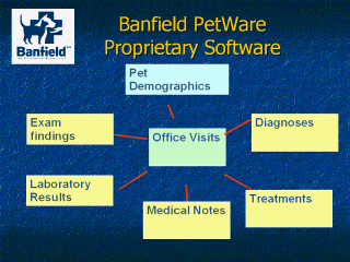 Banfield data base has a unique pet identification code · The Banfield medical records data dictionary contains approximately 400 different exam finding codes (clinical signs), 200 laboratory tests codes, 600 diagnoses codes, and 1800 treatments, procedures, and products codes. · A web portal has been developed to rapidly search over 15 million medical records and to generate standard reports, most in <20 seconds |