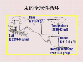 汞从自然和人类来源中以元素蒸汽的形式散发到大气中。可以认为是可溶性的形式