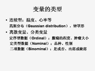 有许多不同类型的变量。辨别它们的类型很重要,因为这决定了我们用何种统计分析方法。