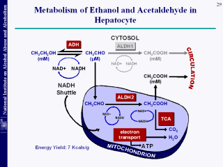 enzyme, aldehyde dehydrogenase (ALDH) to acetate. Because of the