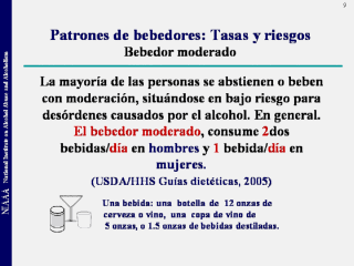 consumir hasta 2 bebidas por día para hombres y una bebida por día para