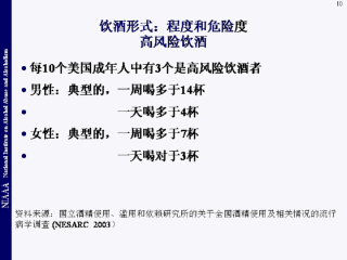 研究表明了饮酒方式对饮酒后果的重要性。比如,酒精的急性反应是由于饮酒过多过快引起的。它所导致的脑功能降低能造成意外死亡和/或伤害、暴力和/或凶杀、自杀、危险性性行为和/或性侵犯和对财务资产的破坏。慢性反应包括由于过量频繁饮酒造成的广泛性器官损害,包括肝硬化、心血管疾病、胰腺炎和痴呆及其他至少50种疾病,包括酒精依赖。