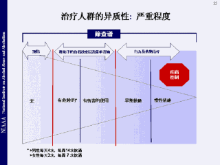 没有对酒精滥用失调症“严重程度”的单一定义。对某些人,它表示的是心理或者生物医学的结果;其它的则通过DSM或ICD症状来评判。部分研究者通过病程的长短或者实际酒精用量来评判严重度。对于存在风险的饮酒者和已经发生危害的饮酒者,临床工作人员可以通过咨询来帮助于他们进行自我改变,以防止并发症的产生以及疾病的慢性化。对于早期的慢性酒精依赖,有多种行为以及药物治疗可供选择。与其他慢性疾病一样,最严重的患者需要间歇或持续的疾病控制。