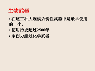 生物武器在这三种大规模杀伤性武器中是最早使用的一个,使用历史超过