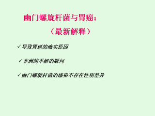 1)幽门螺旋杆菌的高感染地区分布在非洲和东南亚,但那里胃癌的发生率一般较低