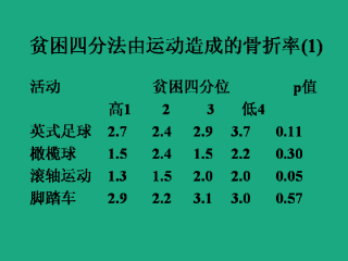 这是贫困四分法中,由几种运动造成的骨折率。