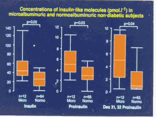 elevated concentrations of insulin, proinsulin and Des 31,32 proinsulin suggesting that
