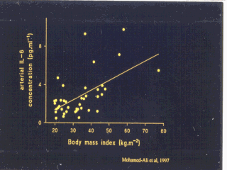 Arterial levels of IL-6 are well related to estimated total body fat.