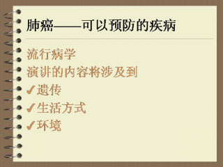 目前,肺癌已经是西方社会的第三大癌症,仅次于前列腺癌和乳腺癌。在许多国家中,肺癌已经成为了无论何种性别的人群中致死最多的癌症。然而,鉴于肺癌病例中的4/5都与吸烟密切相关,肺癌同时也是所有癌症中最容易预防的一种。