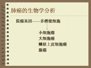 一般认为在肺部细胞中发生的恶性转化与原癌基因的活化或者抑癌基因的抑制有关。原癌基因控制着特定细胞的正常生长发育。原癌基因的表达受到机体内的严格控制。当发生恶性转化时,这种严格的控制丧失,于是原癌基因通过多种途径被活化。ErbB和myc都是原癌基因。17号染色体上的P53是抑癌基因。