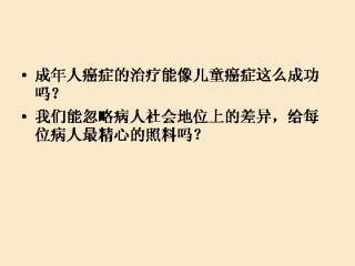 许多在儿童癌症治疗方面的进步措施被推荐用于成年人的癌症治疗上。