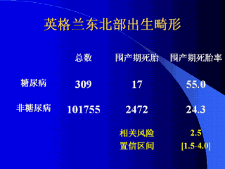 英格兰东北部糖尿病妊娠的先天畸形的相对风险为