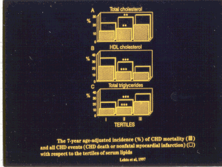 | Let’s move on into lipid therapy. There are number of studies largely from Scandinavia that suggest that in diabetic patients cholesterol is less of the risk factor than triglyceride. This is one of three Finnish studies suggesting that LDL or total cholesterol is of little influence on incident cardiovascular diseases than triglycerides concentrations, LDL triglycerides, HDL triglycerides or total triglyceride is much more powerful predictor. |