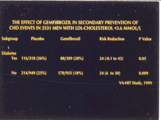 to gemfibrozil or placebo. Both in the diabetic and nondiabetic patients it was 24%