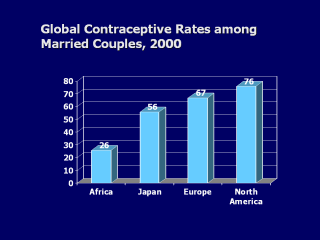 | Although contraceptive methods are now so widely available, there is still great variability in use worldwide. Over half of married couples in industrialized countries report contraceptive use, whereas only a quarter of married African couples report contraceptive use. |