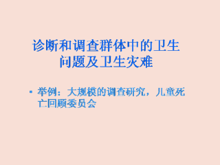 调查群体中的卫生卫生为体及卫生灾难的例子是当食物负担被报道时爆发的调查研究和儿童死亡委员会,它调查儿童在社会中的死亡原因和在未来怎样避免儿童死亡。