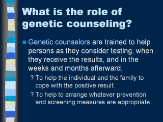 cancer, genetic counseling plays a vital role. Persons considering genetic
