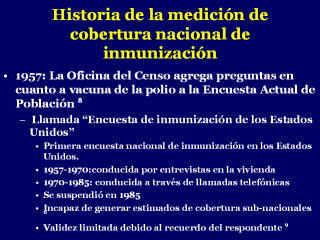 desde 1957 a 1985. La encuesta de inmunización de EUA estuvo limitada en su
