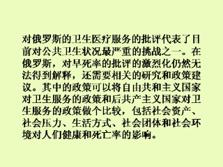 关系来定的。所以,之后俄罗斯对于历史的卫生政策的审查就有了很大的退步。共产主义时代的意识形态保证每个人都享有相同的卫生医疗服