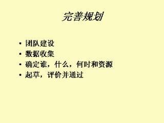 一张活动表格有助于列出所有的检查项目。这可能需要很多的草稿,因为每一系列的评价后都会形成更凝练的计划。当规划中的一切都安排妥当或者适合行动时,规划就应该呈给政府部门批准。规划一旦得到批准,就开始执行。